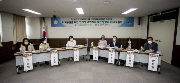 [프레스뉴스] 김대일 기자= 안산시의회 의원연구단체 ‘안산 지방분권 의원 연구모임’이 지난 20일 전문가와 시민 패널이 참여하는 토론회를 개최해 안산형 주민자치의 발전 방향을 논의했다.