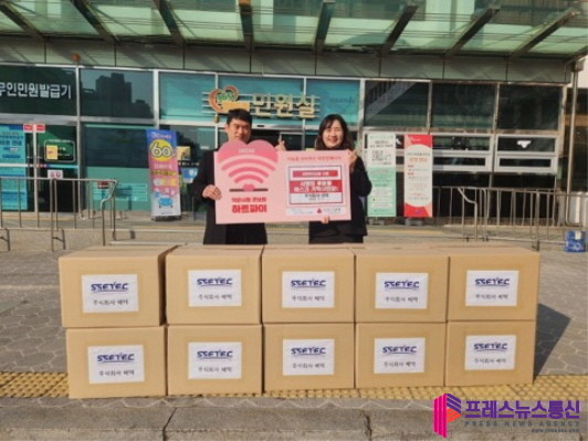 [프레스뉴스] 장현준 기자= 안산시(이민근 시장)는 지난 8일 주식회사 쎄택(대표 김종현)으로부터 관내 사회복지 시설을 위한 마스크 2만장을 기탁받았다고 9일 밝혔다.