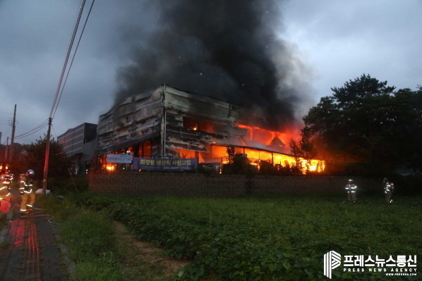 ▲ 포천 화장품 제조공장 화재 모습(사진=경기도북부청) |
