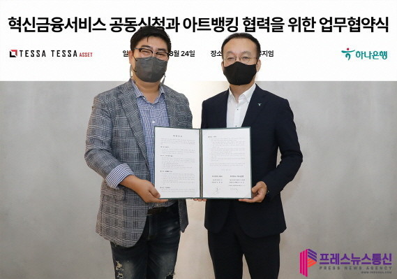 하나은행과 ㈜테사는 이번 업무협약을 통해 아트뱅킹 서비스 등 신규 사업 발굴과 함께 금융위원회가 지정하는 혁신금융서비스에 공동으로 신청해 선정될 수 있도록 상호 협력키로 했다.