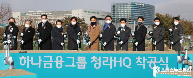 [프레스뉴스] 김대일 기자= 하나금융그룹(회장 김정태)은 지난 15일 오후 인천 서구 청라국제도시 소재 하나글로벌캠퍼스에서 ‘청라 그룹헤드쿼터’ 착공식을 개최했다고 밝혔다.