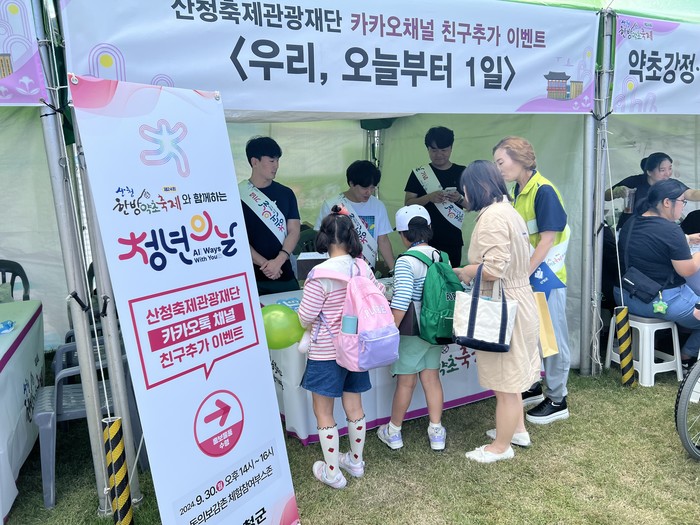 또 청년협의체 회원 등이 참여해 산청축제관광재단 카카오채널 친구추가 이벤트 ‘우리, 오늘부터 1일’을 통해 축제 홍보와 청년의 날 기념 물품 등을 제공해 호응을 얻었다.