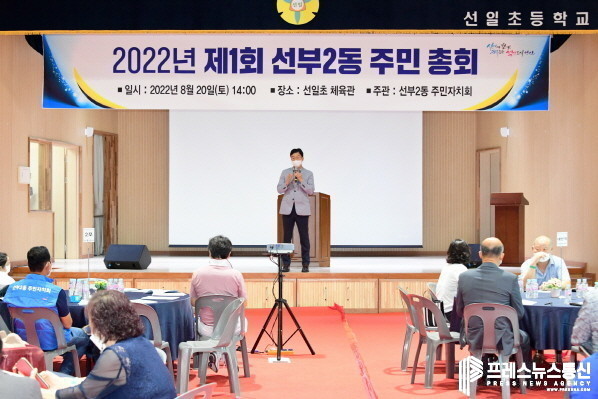 | ▲ 이민근 시장이 지난 8월 20일 제1회 선부2동 주민총회에 참석하고 있다.(사진=안산시) |