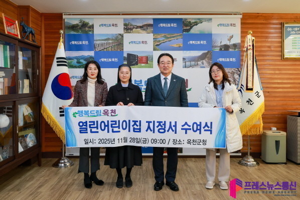 [프레스뉴스] 류현주 기자= 옥천군은 28일 군수실에서 ‘믿고 맡길 수 있는 보육환경 조성’을 위해 2025년 열린어린이집 선정서 수여식을 개최하고, 재선정된 어린이집 원장 3명에게 선정서를 전달했다.