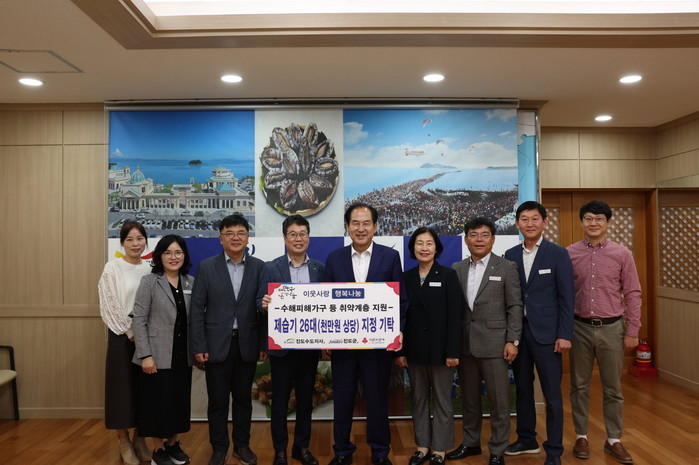 진도군수는 “한국수자원공사의 이번 기탁이 피해를 입은 주민들에게 큰 힘이 될 것”이라며, “앞으로도 진도 군민을 위해 많은 협력을 부탁드린다”라고 전했다.