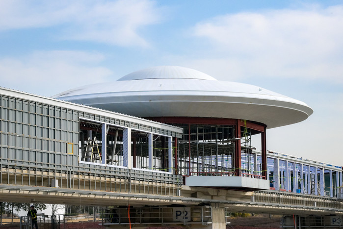 [전남=프레스뉴스] 강래성 기자= 순천시(시장 노관규)가 ‘스페이스 브릿지’에 지름 20m의 우주선 모양의 조형물 설치를 진행했다. ‘스페이스 브릿지’는 노후화된 ‘꿈의다리’를 업그레이드한 장소로, 어린이들의 꿈을 우주까지 연결한다는 의미를 담았다.