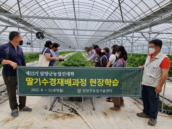 | ▲ 담양군농업인대학 딸기수경재배 과정 현장 학습 모습.(사진제공=담양군) |