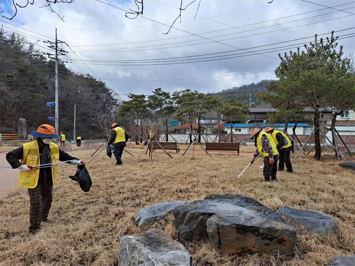 ▲ 화순군 노인 일자리 사업에 참여한 노인들이 마을 정화작업을 실시하고 있다.(사진제공=화순군) |