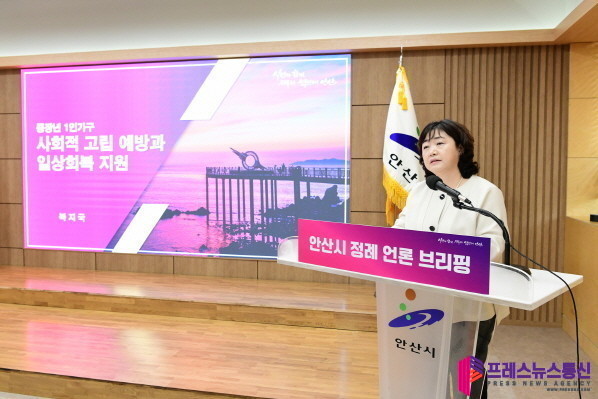 | ▲18일 오전 박소운 복지국장이 중장년 1인 가구 사회적 고립 예방과 일상회복 지원에 대한 정책브리핑을 하고 있다.(사진=안산시) |