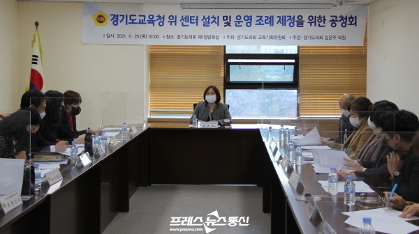 [프레스뉴스] 김대일 기자= 경기도의회 교육기획위원회 김은주 의원(더불어민주당, 비례)은 지난 11월 25일(목), 도의회 제1정담회실에서 ‘경기도교육청 위(Wee) 센터 설치 및 운영 조례’ 제정을 위한 공청회를 개최했다.