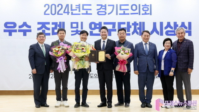 ▲경기도의회 도시환경위원회 김태희 의원이 지난 26일(목) 도의회 대회의실에서 열린 ‘2024년도 경기도의회 우수조례·연구단체 시상식’에서 우수조례로 선정되는 영예를 안았다.(사진=경기도의회) |