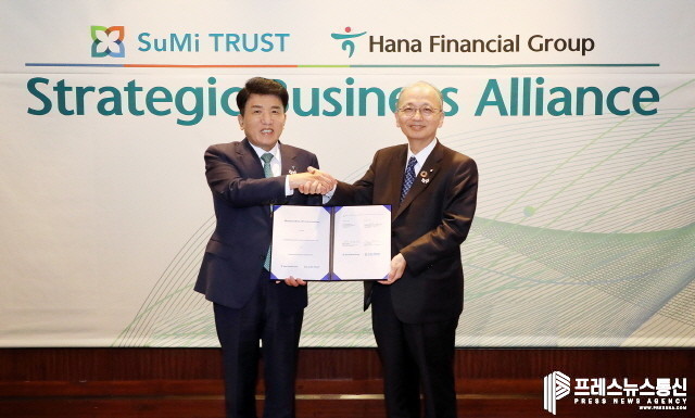 [프레스뉴스] 김대일 기자= 하나금융그룹(회장 함영주)은 일본 미쓰이스미토모 신탁그룹(이하 ‘스미트러스트’)과 지난 3일 글로벌 금융사업 협력관계 강화를 위한 업무협약을 체결했다고 밝혔다.