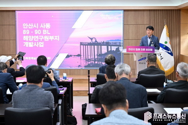 안산시(시장 이민근)는 9일 오전 도원중 기획경제실장 주재로 사동 89·90블록 및 해양연구원 부지 개발사업에 대한 세부 설명과 언론의 질문에 답하는 언론브리핑을 진행하고 이같이 구상을 설명했다.