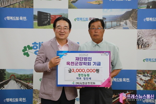 [프레스뉴스] 류현주 기자= 옥천군 이원면의 경민농원 염진세 대표가 3일 옥천군장학회에 장학금 300만 원을 기탁했다.