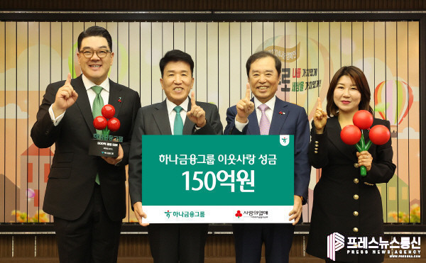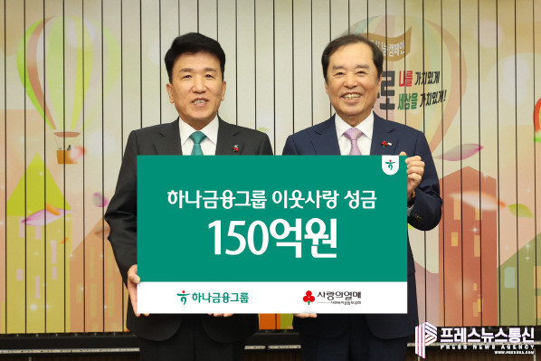 [프레스뉴스] 김대일 기자= 하나금융그룹(회장 함영주)은 연말을 맞아 금융의 사회적 책임을 다하고 나눔을 통한 사회공동체와의 상생을 위해 이웃사랑성금 150억원을 사회복지공동모금회(회장 김병준)에 기탁했다고 밝혔다.