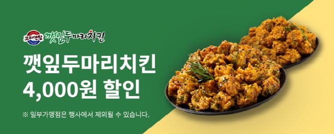 경기도주식회사는 28일까지 진행되는 6개 프랜차이즈 브랜드 이벤트에 치킨 브랜드 ‘코리엔탈깻잎두마리치킨’ 소비자 이벤트를 추가 진행한다고 19일 밝혔다.