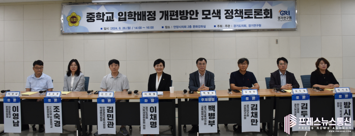 [프레스뉴스] 류현주 기자= 경기도의회 이채명 의원(더불어민주당, 안양6)은 지난 26일 안양시의회 2층 문화강좌실에서 열린 ‘중학교 입학배정 개편방안 모색’을 주제로 한 정책토론회의 좌장을 맡아 경기도 중학교 입학배정의 현황과 개편방안을 공유하는 시간을 가졌다.