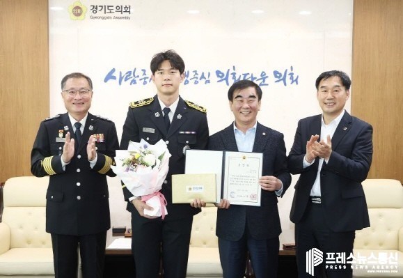 염 의장은 지난 14일 의장 접견실에서 윤종영 도의원(국민의힘, 연천), 이선영 연천소방서장이 배석한 가운데 연천 전곡119안전센터 소속 김신영 소방사(25)에 표창장을 전달했다.