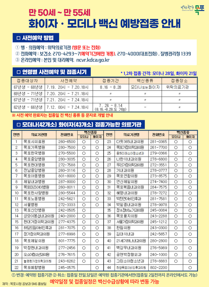 | ▲만 50~54세, 모더나·화이자 백신 사전 예약 실시(목포시 제공) |