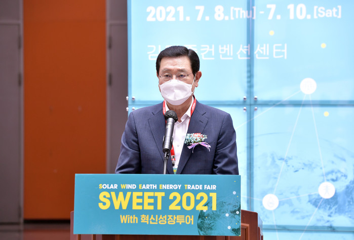 [광주=프레스뉴스] 강래성 기자=국제 신재생에너지 전시회 ‘SWEET 2021’(Solar, Wind & Earth Energy Trade Fair)가 8일 오후 광주 김대중컨벤션센터에서 개막했다.