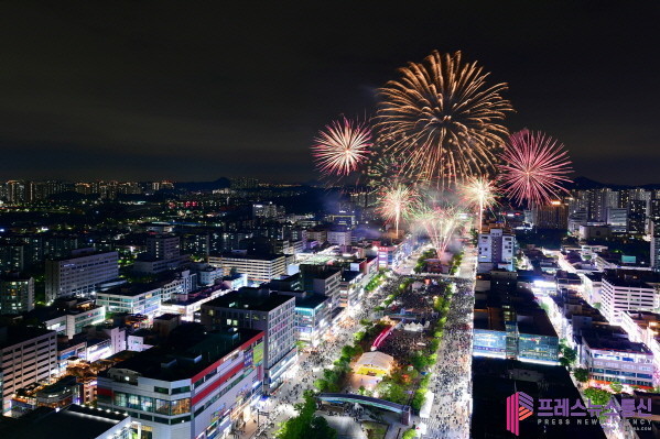 | ▲2025년 제21회 안산국제거리극축제 폐막식 불꽃놀이(사진=안산문화재단 제공) |