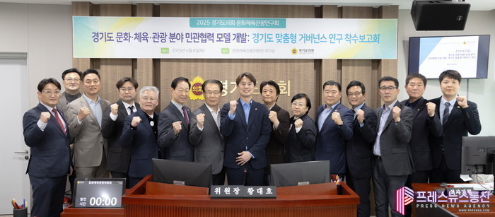 [프레스뉴스] 류현주 기자= 경기도의회 문화체육관광연구회(회장 황대호 의원)는 8일 문화체육관광위원회 회의실에서 ‘경기도 문화·체육·관광 분야의 민관협력 모델 개발: 경기도 맞춤형 거버넌스 연구’ 정책연구용역에 대한 착수보고회를 개최했다.