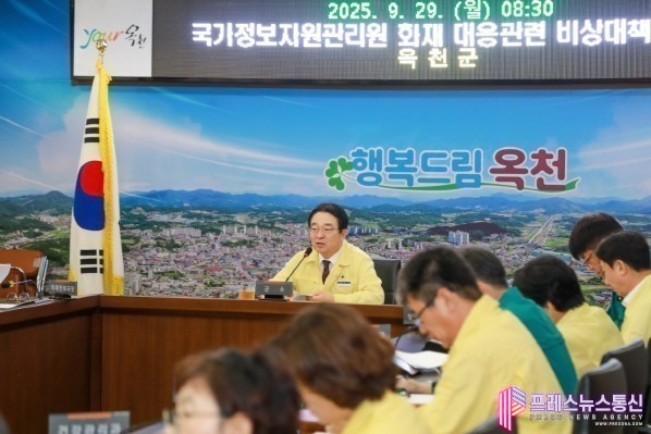 [프레스뉴스] 류현주 기자= 옥천군이 국가정보자원관리원 화재로 전국 대민·행정 서비스 장애가 발생하자 행정 공백 최소화를 위하여 29일 긴급 비상대책회의를 개최했다.