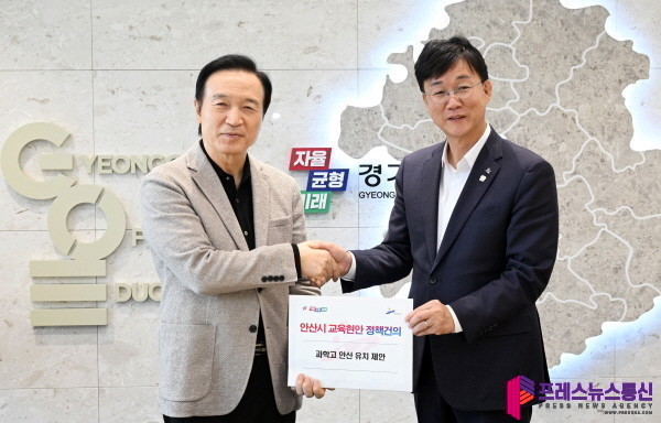 [프레스뉴스] 장현준 기자= 안산시(시장 이민근)는 이민근 안산시장이 지난 25일 경기도교육청 대회의실에서 개최된 ‘2024 지역교육협력 컨퍼런스’에서 임태희 경기도교육감과 면담하고 ‘과학고 안산시 유치’ 선정 필요성을 담은 정책건의서를 전달했다고 28일 밝혔다.