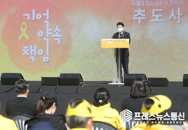 김대순 안산시장 권한대행은 추도사를 통해 “세월호 참사로 안타깝게 희생된 단원고 학생과 교사, 일반시민 등 모두 삼백네 분의 명복을 빈다”며 “안산시는 세월호 참사와 희생의 교훈을 가슴에 새기고, 안전한 미래를 만드는 데 노력을 다하겠다”고 말했다.