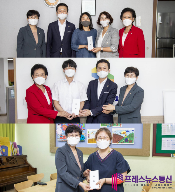 시의회 송바우나 의장과 이진분 부의장, 박은경 의회운영위원장, 김진숙 기획행정위원장 등 의원 일행은 지난 7일 사회복지시설 5곳을 찾아 50만원씩 총 250만원의 격려금을 전달하고 애로사항을 청취했다.