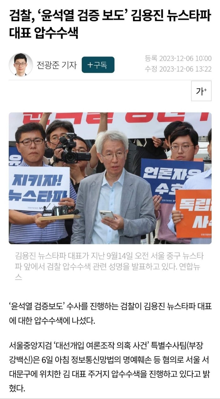 [칼럼] 정철승 = 검찰이 어제 뉴스타파의 "윤석열 수사무마 의혹 보도" 때문에 김용진 대표의 자택을 압수수색했다.