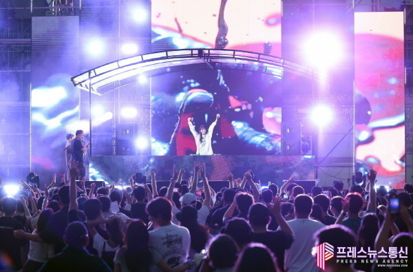 ▲지난 18일 밤 열린 써머비트 페스티벌에서 DJ수빈이 열정적인 무대를 선보이고 있다.(사진=시흥시) |