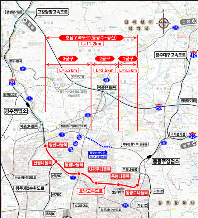 - 동광주IC⁓광산IC 총 11.2㎞ 6차로 확장 추진