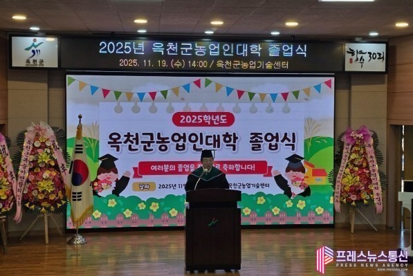 [프레스뉴스] 류현주 기자= 옥천군은 19일 농업기술센터 농업인교육관에서 옥천군 농업의 미래를 이끌어갈 농업전문인력을 양성하는 2025학년도 옥천군농업인대학 졸업식을 성황리에 개최하고, 총 43명의 전문 농업인을 배출했다.