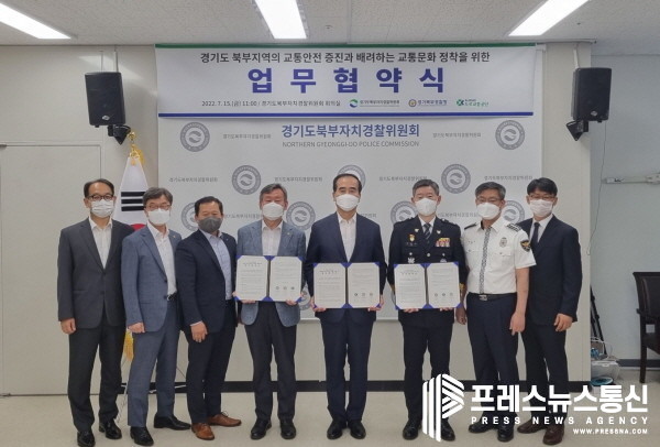 [프레스뉴스] 김대일 기자= 경기도북부자치경찰위원회와 경기북부경찰청, 도로교통공단은 15일 위원회에서 경기도 북부지역의 ‘안전한 교통환경 조성 및 배려하는 교통문화 정착’을 위한 업무협약을 맺고 상호 간 협력을 강화하고자 손을 맞잡았다.