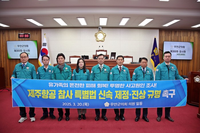 무안군의회는 결의안을 통해 △사고조사위원회의 독립성과 객관성을 확보하고 모든 조사 결과를 투명하게 공개할 것 △피해자 및 유가족에 대한 일상생활 회복 지원 등 일련의 후속 조치를 담은 특별법을 조속히 제정할 것 △피해자 및 유가족에 대한 2차 가해를 방지하기 위한 강력한 법적 조치 방안을 마련할 것을 정부와 국회에 강력히 촉구했다.