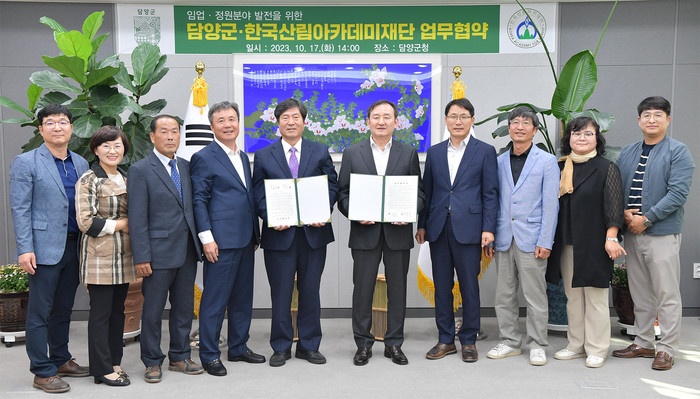| ▲한국산림아카데미재단, 임업·정원 분야 활성화를 위한 업무협약 체결 (사진제공=담양군) |