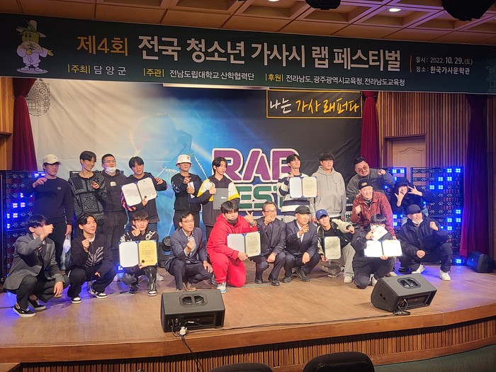 | ▲2022년 제4회 가사시 랩 페스티벌 시상식 단체 사진(사진제공=담양군) |