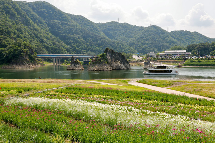 1일 군에 따르면 군은 도담정원에 올해 약 4만㎡ 규모의 꽃밭에 캘리포니아양귀비와 잉글랜드양귀비, 안개초, 끈끈이대나물 등 다채로운 봄꽃을 식재하고 도담삼봉을 형상화한 문양과 무지개 테마를 반영한 꽃밭 연출, 꽃길·산책로·포토존을 준비했다.