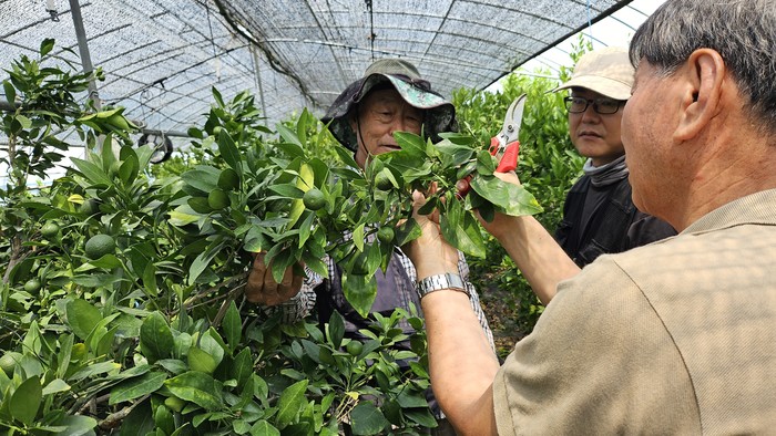 [프레스뉴스] 정재학 기자=합천군(군수 김윤철)은 17일 삼가면 일대 만감류 재배 농가 5곳을 대상으로 여름철 생육관리 중심의 현장 맞춤형 컨설팅을 실시했다. 이번 교육은 제주농업마이스터대학 이중석 교수를 초빙해 진행됐으며, 지난 3월 이론교육에 이은 두 번째 단계다.