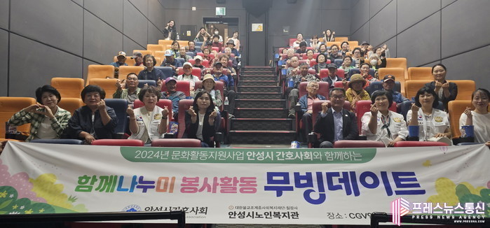 이날 진행한 영화관 나들이 활동은 경기도의회 황세주 의원과 안성시 간호사회 임원, 복지관 봉사자가 함께해 안성지역에 거주하시는 70세 이상의 소외된 어르신 40여 명을 모시고 영화 ‘스턴트맨’을 관람 후 지역사회에서 살아가는 이야기를 소탈하게 나누는 내용으로 구성됐다.