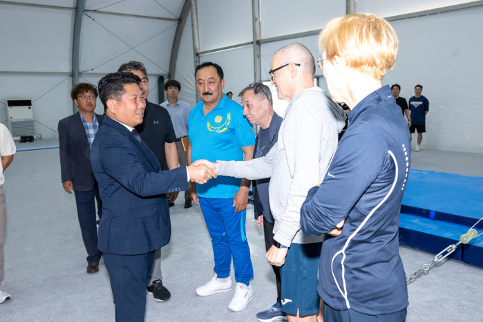 ▲김창규 제천시장이 지난달 29일 2025 기계체조 아시아선수권대회 합동 현장 점검과 선수단 격려를 하고 있다. |