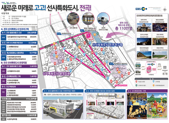 사업 내용을 살펴보면 우선 연천군 전곡읍은 구석기 관광자원과 연계한 선사특화사업을 추진한다. 선사유적 콘셉트를 활용한 테마놀이시설인 전곡플레이파크를 조성하고, 한국교육방송공사(EBS)와 협업해 교육 콘텐츠 발굴 및 캐릭터 개발 등 가족단위 관광객을 유도할 계획이다. 전곡로, 온골로, 전곡역로, 전곡역로 66번길 등 특화가로 조성으로 선사특화도시로서의 면모도 더할 예정이다.