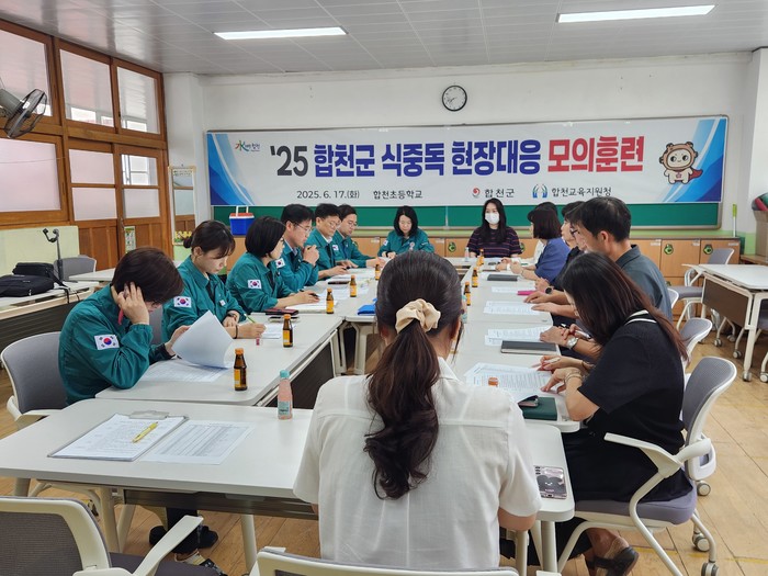 [프레스뉴스] 정재학 기자=합천군은 17일 합천초등학교에서 식중독 발생에 대비한 현장대응 모의훈련을 실시했다. 이번 훈련은 여름철 식품안전 취약 시기를 앞두고 실전과 같은 상황을 재현하며 대응 역량을 강화하는 데 초점을 맞췄다.