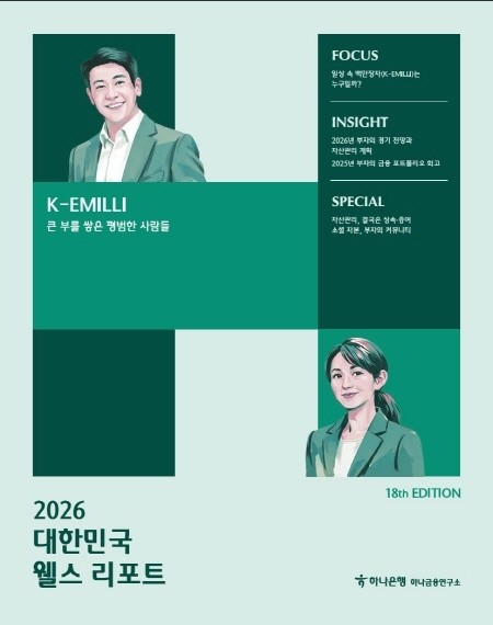 발간 18년째인 이번 「2026 대한민국 웰스 리포트」 보고서는 최근 10년 이내 부자 반열에 오른 50대 이하 자산가를 ‘K-EMILLI(K-에밀리, Korea Everywhere Millionaires*)’로 명명하고, 이들의 부 형성 과정과 투자 철학을 부자** 전체 집단과 비교 분석했다. 또한, 2026년 자산관리 전망, 상속ㆍ증여 트렌드, 부자의 모임(커뮤니티)과 부의 상관관계 등을 폭넓게 다뤘다.