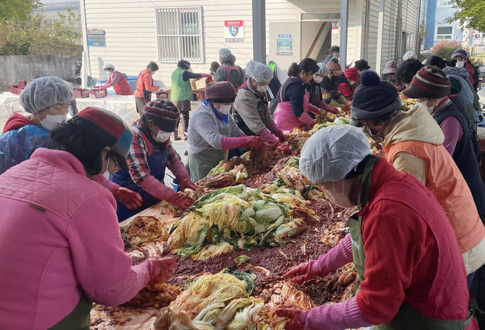 읍면 12개 자원봉사 단체 참여해 이웃 2,500세대에 직접 담근 김치 전달
