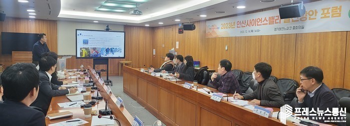[프레스뉴스] 장현준 기자= 안산시(시장 이민근)는 지난 14일 경기테크노파크에서 안산사이언스밸리(이하 ‘ASV’) 혁신기관들과 ‘2023 안산사이언스밸리(ASV) 발전방안 포럼’을 개최했다고 16일 밝혔다.