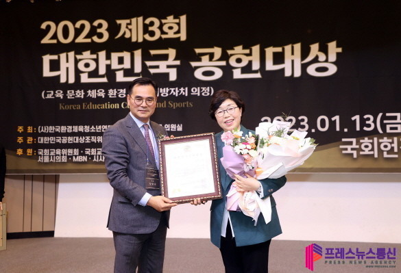 「2023년 대한민국 공헌대상」(2023 KOREA CONTRIBUTION AWARDS)은 교육,문화, 체육, 환경, 의정, 지방자치, 봉사 등 7개분야에서 우리 사회의 공동체 가치 실현 및 국가 발전에 공헌한 유공자를 발굴하여 이를 널리 알리고 미래 세대를 위한 우리 사회의 당면한 문제들을 해결해 가는데 기여하는 것을 목적으로 제정하여 시상하는 상이다.
