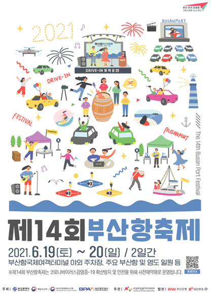 올해 부산항축제는 ▲개막행사 ▲부산항 영화관 ▲드라이브 in 부산항 ▲체험가득해(海) ▲낭만가득해(海) ▲해양레저 체험 등으로 구성되며, 코로나19 확산 방지와 방역지침을 준수하여 참가 인원을 제한한 사전예약제로 개최된다.