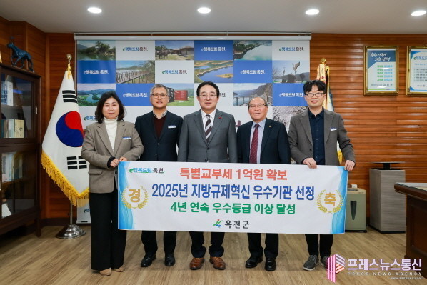[프레스뉴스] 류현주 기자= 옥천군은 행정안전부가 주관하는 ‘2025년 지방규제혁신 추진성과 평가’에서 4년 연속 우수기관으로 선정돼 특별교부세 1억 원을 확보하는 성과를 거두었다고 밝혔다.